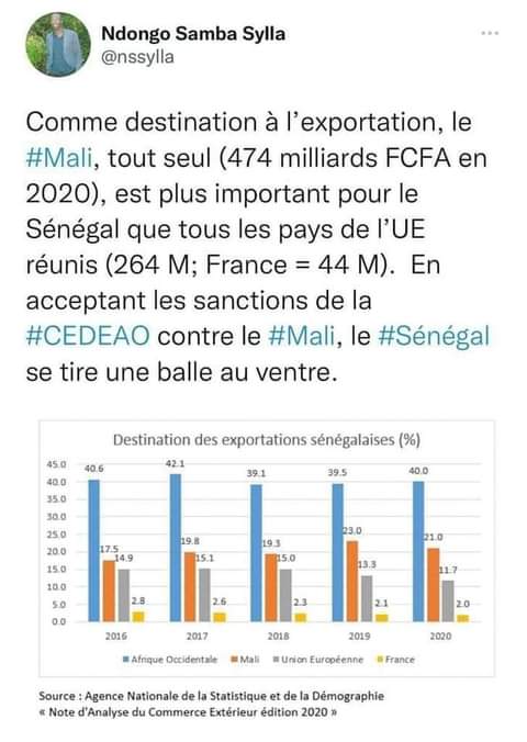 Le Sénégal est le plus grand perdant de l’embargo infligé au Mali. C’est l’avis l’économiste Ndongo Samba SYLLA qui réagit après les sanctions décidées par la CEDEAO.