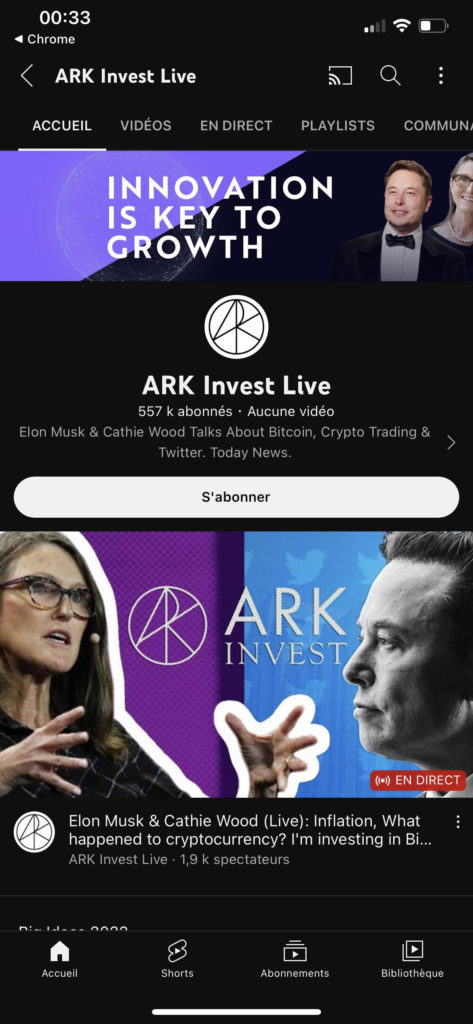 On note que les hackers ont fait un rebranding de la chaîne afin qu’elle ressemble à celle d’Ark Invest, le fonds d’investissement de Cathie Wood, tout en diffusant un live tendant à faire croire à une interview d’Elon Musk, nouveau propriétaire de Twitter. Les spectateurs étaient ensuite redirigés vers des Codes QR pour participer à une collecte de fonds. Cette même stratégie a été utilisée il y a quelques semaines contre les plateformes de l’Armée britannique (British Army).