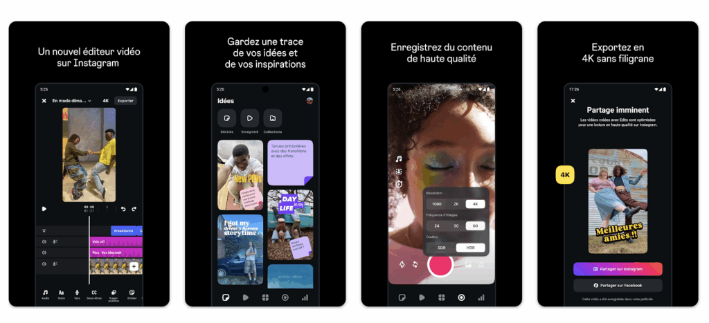Annoncée initialement en janvier, « Edits » est désormais accessible à tous. Instagram la présente comme un outil permettant de « créer de superbes vidéos sur votre téléphone », une véritable « application de création vidéo conçue pour les créateurs ». Bien qu’en phase de développement, Instagram espère clairement qu' »Edits » remplira une double fonction : rivaliser avec TikTok en fournissant les outils vidéo recherchés par les créateurs exigeants et offrir une alternative aux utilisateurs de CapCut en cas de bannissement de TikTok aux États-Unis.