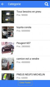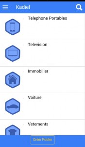 Mais pour le moment, l’application «Kadiel ®» ne se focalise que sur 8 catégories de produits : voitures, vêtements, téléphones, télévision, chaussures, Bazin, immobilier, livres, comme vous pouvez le voir dans les images suivantes :