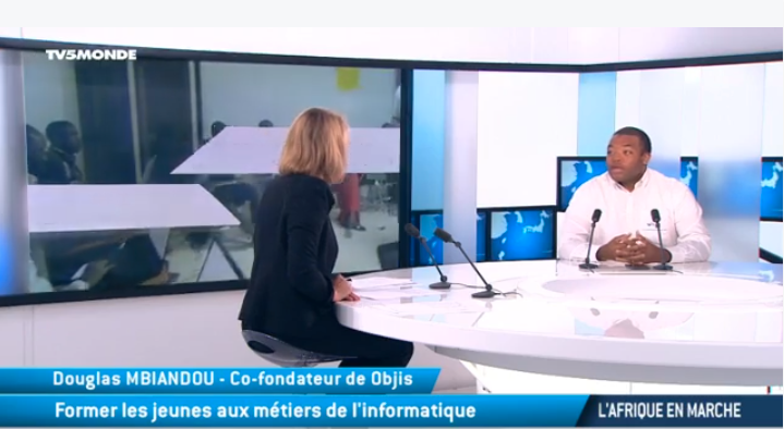 Douglas Mbiandou Objis initiateur du projet 10,000 codeurs est l’invité de TV5 Monde. Il reparle de son projet dont l’ Objectif est former 10 000 codeurs informatique à l’horizon 2025.
