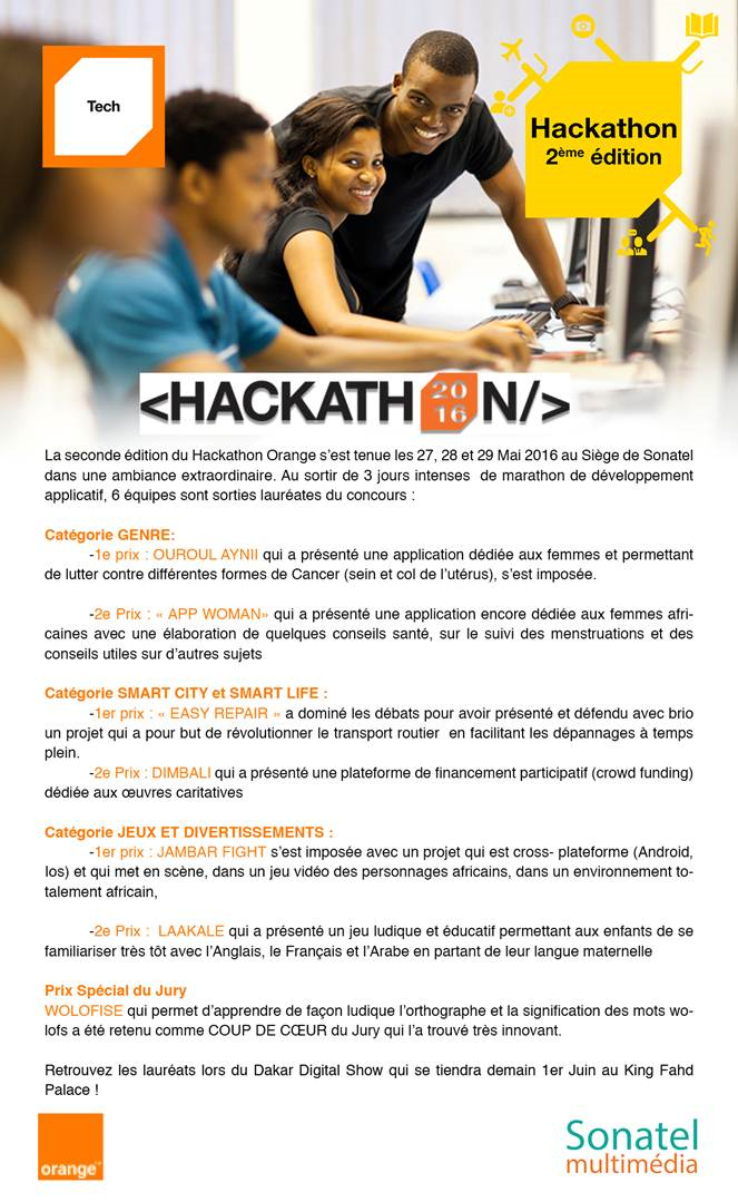 Jambar Fight, a remporté la semaine dernière le 1er prix de la catégorie « Jeux et Divertissement » de la 2 ème édition du Hackaton Orange qui s’est déroulé du 27 au 29 mai 2016 à Dakar en marge du Dakar Digital Show