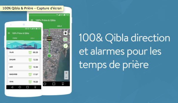 L’application 100% Qibla & Prière est un aide pour les musulmans, pour trouver la direction du qibla et pour voir les temps de prière, à travers le monde. La direction de la Kaaba à la Mecque est visualizé par une flèche sur la carte, pourque vous puissiez ajuster votre position avant commencer la prière. L’application régle les temps de prière automatiquement, selon votre localisation, ville et pays. Vous ne vous devez plus inquiéter de manquer vos temps de prière avec l’aide du alarme d’adhan, et l’écran près des temps de prière, qui vous monte le temps restant.