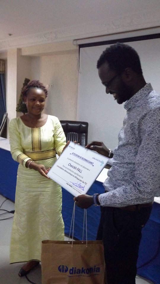 Diakonia, une organisation humanitaire suédoise, a remis, la semaine dernière, un diplôme pour la consolidation démocratique en Afrique par les TIC à Cheikh Fall. C’était lors de AFRICAPACITES 2016 dont le thème était : « Veille citoyenne pour l’imputabilité politique et la redevabilité socioéconomique, la valeur ajoutée des Tic ».