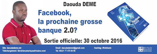 Son nom est Daouda Déme. Un jeune entrepreneur de la nouvelle économie, activiste et blogueur Africain né au Sénégal il y’a une trentaine d’années et passionné de la finance. Il vient de sortir un nouveau livre intitulé « Facebook, la prochaine grosse banque 2.0 ».