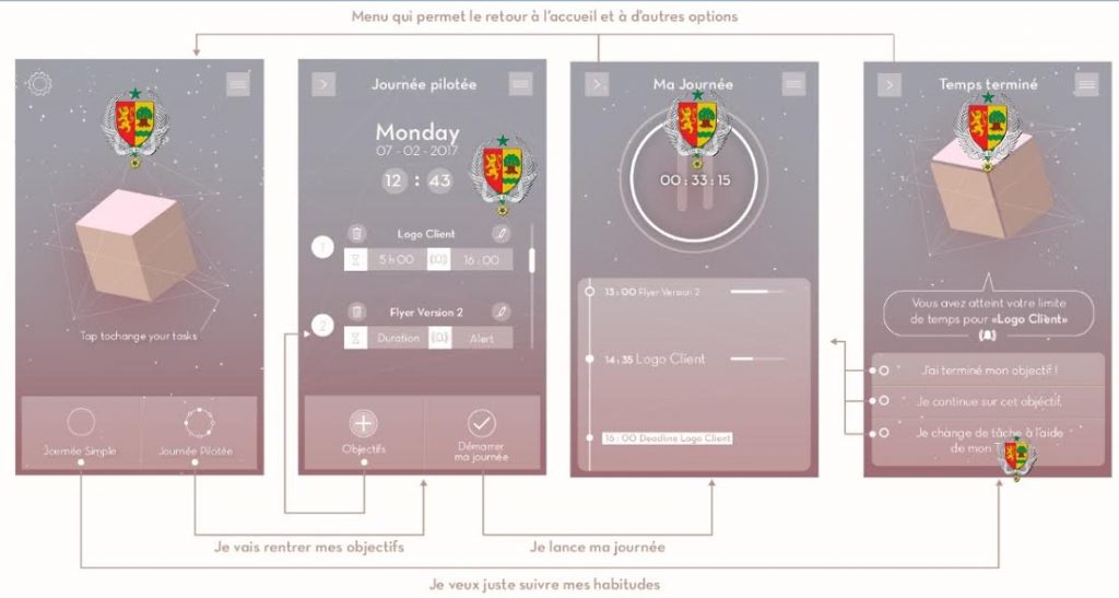 Le nombre d’heures que les opérationnels passent sur une tâche pour mesurer leur performance. Un temps de durée définie et une alerte pour n’importe quel type de tâche sont disponibles en temps réel. Les menus sont organisés en fonction d’une tâche concernant une journée dite simple et d’une journée dite pilotée (donc en supervision par le manager de l’entreprise)”, explique le concepteur qui soutient que l’appli permettra aux managers de définir les objectifs à atteindre par le personnel (objectifs hebdomadaires) et peut ainsi suivre l’évolution du travail en temps réel avec une base de données centralisée.