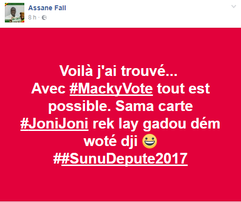 Sur Twitter dès Fatima Z. SALL, alias TimTim a posé la question « Avec quelle carte allez-vous voter ? Avec le mot- dièse #MackyVote, les Twittos se sont lancés à la course aux réponses avec humour.