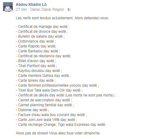 Depuis l’annonce, par un communiqué, que les Sénégalais qui n’ont pas encore retiré leur carte d’identité biométrique peuvent voter avec d’autres pièces qui les identifient, les internautes se sont exprimés avec des posts pour tourner en dérision cette décision du président Macky SALL.