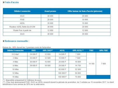 Les anciens tarifs et promotions de Gabon Telecom (abonnements Internet ADSL) avant le 25 octobre 2017.