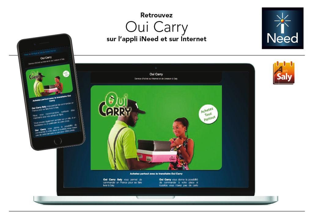 Lauréat de la première saison d’Orange Fab Sénégal (programme d’accélération de startup), Ouicarry est spécialisée dans la logistique depuis 2013. La startup Ouicarry propose à sa clientèle de passer des commandes, sur n’importe quel site à l’international et se faire livrer partout au Sénégal. La plateforme offre s’ouvre également aux clients ne disposant pas de moyens de paiement internationaux.