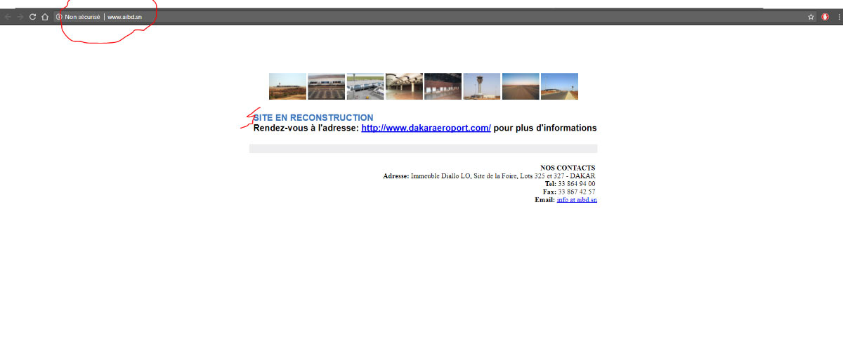 Pendant que le Président de la République du Sénégal, Macky SALL et sa horde inaugure à coups de trompettes et de balafons le flambant neuf Aéroport International Blaise Diagne (AIBD), le site web de ce dernier, alias www.aibd.sn , pour glaner des informations, n’est pas encore paré au décollage.