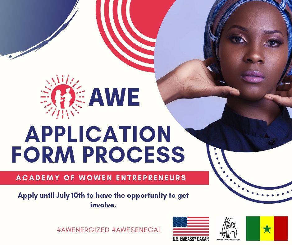 AWE est conçu pour les femmes dynamiques ayant des idées entrepreneuriales. Les participantes n’ont pas besoin d’être dans les affaires ou d’avoir un plan d’affaire développé. Le programme sélectionnera 30 jeunes femmes à Dakar intéressées par l’entrepreneuriat. Les cours seront dispensés en 13 sessions avec des conférenciers experts. En plus, il y aura des opportunités de réseautage.