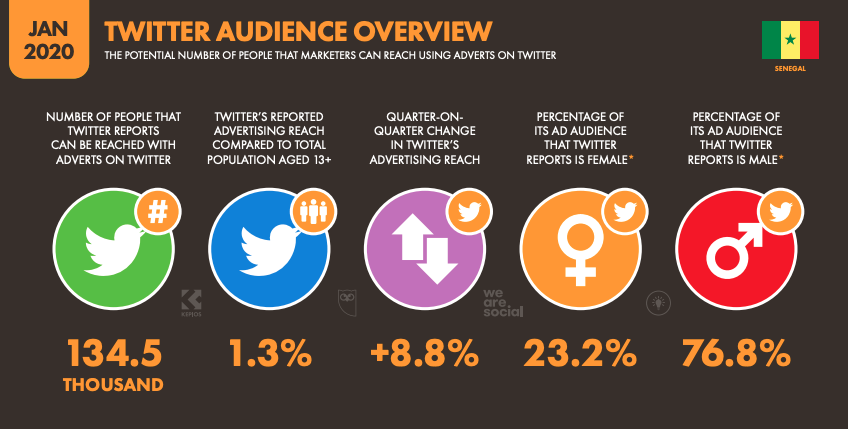 Quant à Twitter, on y compte plus de 134 500 Sénégalais note le rapport qui n’ a pas fourni des informations sur le nouveau réseau social TIk Tok qui fait le buzz sur le web