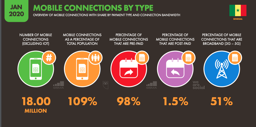 Selon les chiffres du rapport, le sénégalais est très mobinaute. En effet, le portable occupe une grosse place dans la recherche de l’informations et l’utilisation des réseaux sociaux. Avec une population de plus de 16 millions d’habitants, nous sommes à plus de 18 000 000 de mobiles actifs.
