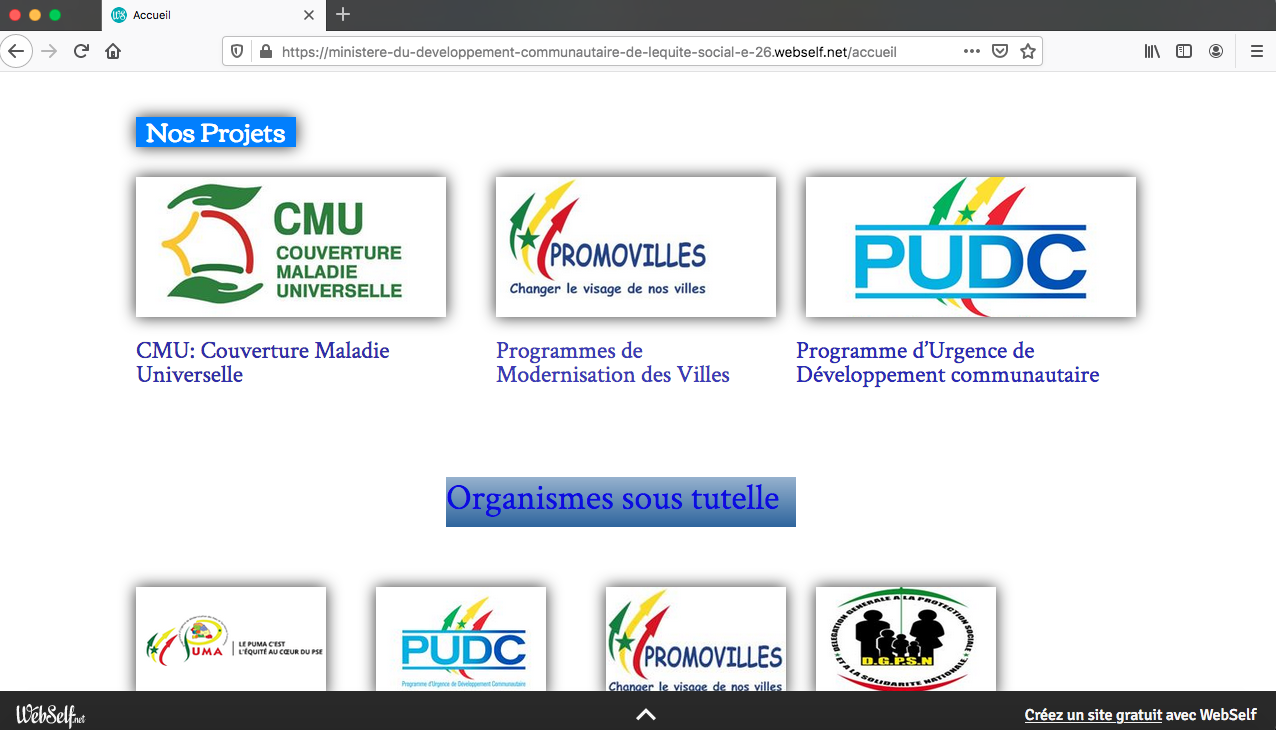 Le Ministère du Développement Communautaire, de l’Equité Sociale, et Territoriale qui a fait l’actualité ces derniers jours a un site web qui est sous webself, une plateforme de création de site web gratuit.