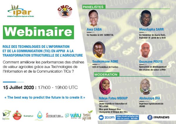 C’est dans ce contexte que l’IPAR, en partenariat avec le CNCR organise un webinaire pour échanger davantage sur la contribution de la technologie dans le développement du secteur agricole. L’organisation du webinaire avec des experts de la Tech et des experts en développement des chaînes de valeur est une occasion pour lancer une recherche sur le potentiel qu’offrent les TIC pour le développement des chaînes de valeur agricoles.