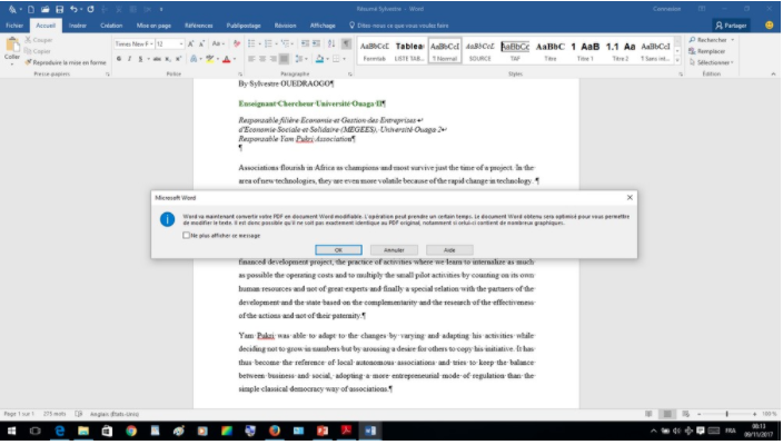 Avec Word, il va vous poser une question. Répondez par OK et votre pdf s’ouvrira en word.