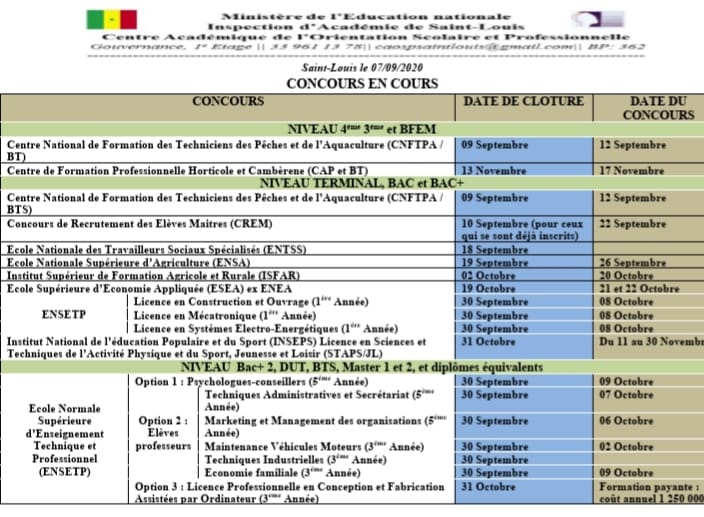 Si vous cherchez à faire un concours durant cette année, Socialnetlink vous propose une liste non moins exhaustive de concours ouverts pour le mois de Septembre au Sénégal.
