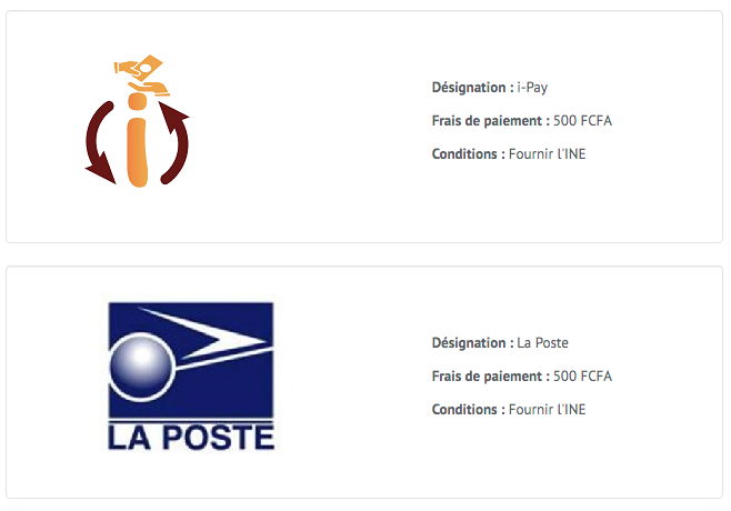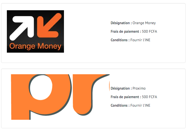 Les nouveaux bacheliers peuvent s’acquitter des formalités de paiement de leurs droits d’inscription à partir de la date de validation de l’orientation, et pendant le délai qui leur est communiqué par email et SMS, auprès des prestataires de transfert d’argent agréés par le Ministère. Les prestataires de transfert d’argent agréés sont : La Poste, Orange Money, i-Pay, Wari et Proximo.