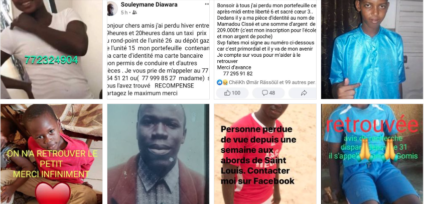 L’idée «d’objets trouvés ou perdus au Sénégal» nait et la page est timidement suivie. «Un jour, poursuit Moustapha, j’ai été à la gendarmerie de la foire où j’ai trouvé un enfant autiste perdu. La stratégie proposée sur place pour l’aider à regagner sa famille m’a paru impertinente. J’ai donc décidé de le photographier pour mettre son image sur ma page». De là, tout est parti : en deux heures, la publication est partagée 1.500 fois. Le nombre d’abonnés se multiplie par deux. Ils deviennent 13.000, le nom change. On est en juin 2018. Cet évènement impose une autre dénomination. «Trouvés et perdus au Sénégal» est adopté comme nom, mais pas pour longtemps. La demande vient d’autres pays de l’Afrique tels que la Côte-d’Ivoire. «Trouvés ou perdus» s’officialise.