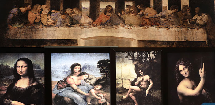 Elle offre à voir ainsi en un seul lieu, par le biais d’une reproduction numérique rendue possible par la ‘’RAI Com’’ (la branche commerciale de l’audiovisuel public italien), les plus célèbres tableaux du génie de Florence. Parmi les tableaux exposés, il y a le portrait de ‘’La Joconde’’ dont l’original se trouve au musée du Louvre à Paris, ‘’l’Annonciation, ‘’La Cène’’ qui reproduit la fresque murale de l’Eglise de Santa Maria delle Grazie à Milan, Les ‘’Vierges de Roger’’ dont l’une est à Paris (France) et l’autre à Londres (Royaume Uni).