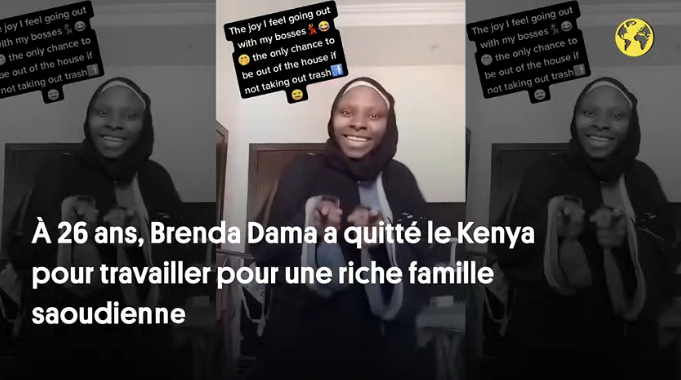 “De la liberté ? Je n’en ai pas. Un seul jour de congé ? Je n’en ai pas.” Voici comment Brenda Dama, une Kényane de 26 ans, décrit dans une vidéo TikTok ce que c’est de travailler en Arabie Saoudite en tant qu’employée domestique.