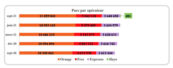 • ORANGE, avec 11.059.043 lignes, enregistre une croissance de 0,97% du parc des lignes ;