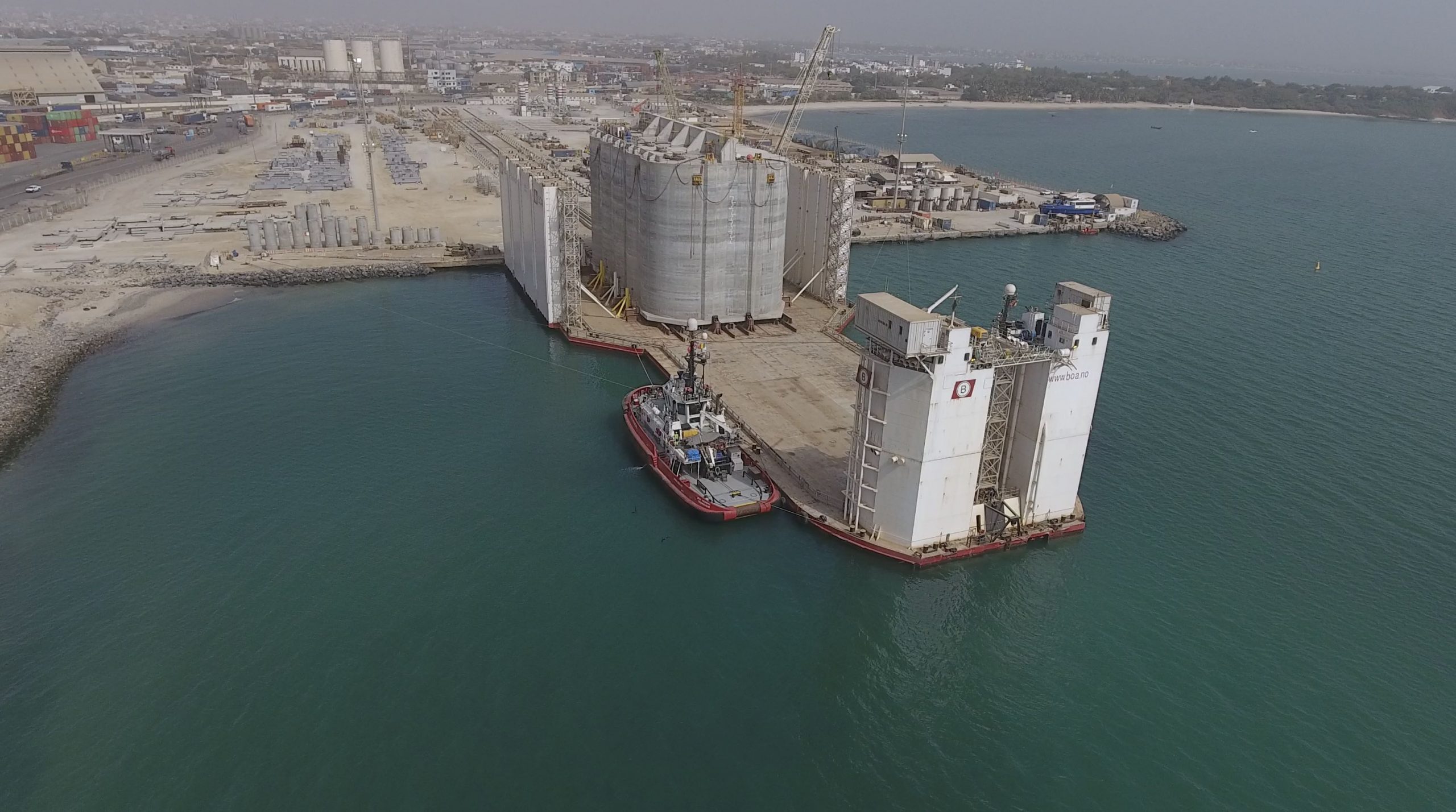 La construction des caissons et la création du chantier sont une première expérience du genre en Afrique. Plus de 12 hectares ont été gagnés sur la mer pour offrir suffisamment d’espace pour la construction de ces énormes structures en béton. En effet d’un poids de 16000 tonnes, chaque caisson mesure 55 mètres de long sur 28 mètres de large et 32 mètres de hauteur. Les travaux ont mobilisé près de 2000 travailleurs sénégalais. Au cours des prochains mois, bp et ses partenaires continueront un travail intensif en mer.