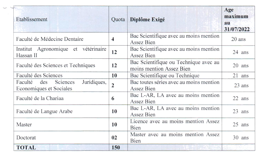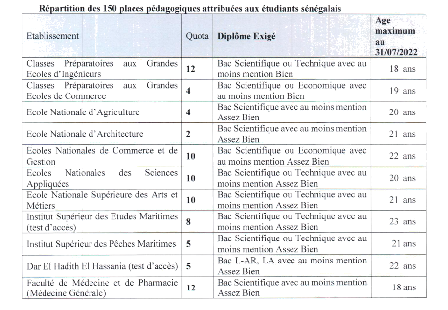 Le Ministre de l’Enseignement supérieur, de la Recherche et de l’Innovation informe que le gouvernement du Royaume du Maroc, par l’entremise de l’Agence marocaine de la Coopération internationale (AMCI), a mis à la disposition du gouvernement du Sénégal deux cent trente (230) bourses d’études, dont quatre-vingt (80) destinés aux établissements des provinces du sud du Royaume, au titre de l’année académique 2022/2023.