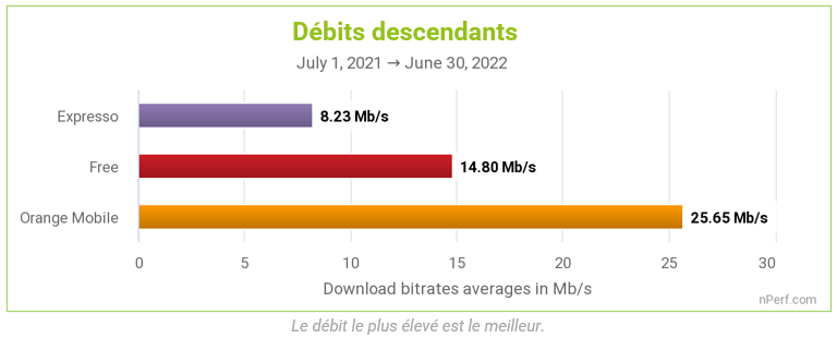 Les abonnés Orange ont bénéficié du meilleur débit descendant moyen (26 Mb/s) au cours des deux derniers semestres.