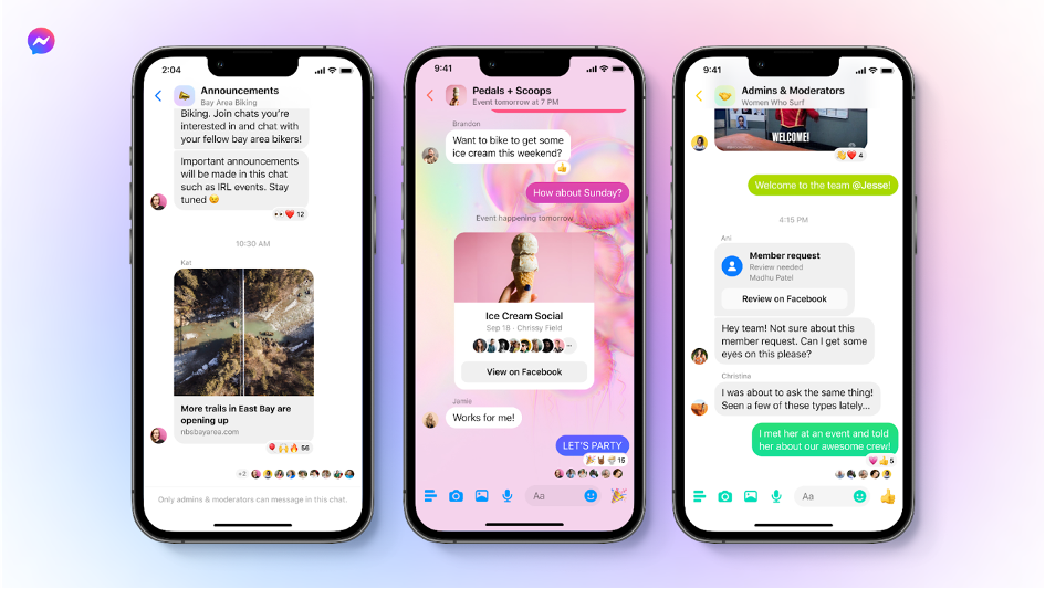 Meta a aidé plus d’un milliard de personnes à se connecter avec leurs proches dans un espace sécurisé sur Messenger, étant donné que les utilisateurs souhaitent échanger en temps réel avec des communautés plus larges sur des intérêts communs. Mark Zuckerberg a annoncé que Meta compte tester la possibilité pour les utilisateurs de démarrer des Community Chats sur Messenger dans les semaines à venir, permettant à ces personnes de créer un groupe Facebook, de démarrer des discussions et des canaux audios, ainsi que d’inviter d’autres personnes à rejoindre leur nouveau groupe sur l’application. Meta compte également étendre les Community Chats à un plus grand nombre de groupes Facebook.
