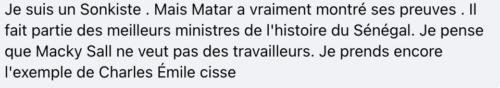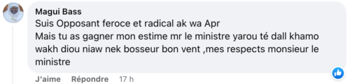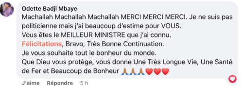 C’est rare de voir qu’une grande partie des Sénégalais, des partisans du pouvoir comme de l’opposition, soient contre le départ d’un ministre. Dans son message de remerciement à l’endroit du président Macky Sall, posté sur sa page Facebook, près de 900 internautes sont allés le féliciter et remercier pour le travail effectué depuis qu’il est à la tête de ce département.