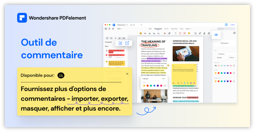 Lorsque vous travaillez avec d’autres personnes sur vos PDF, le menu Commentaire très pratique vous permet d’annoter facilement. Ces fonctions sont également idéales pour prendre des notes pour vous-même.