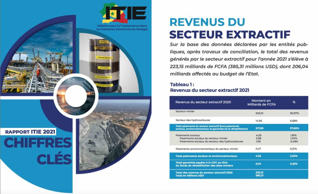 300 milliards de FCFA, c’est la somme générée dans le secteur extractif au Sénégal entre 2021 et 2022 selon les deux rapports de l’exercice 2021 et du premier semestre 2022 publiés ce jeudi à Dakar par le Comité national de l’Initiative pour la Transparence dans les Industries Extractives (CN-ITIE).