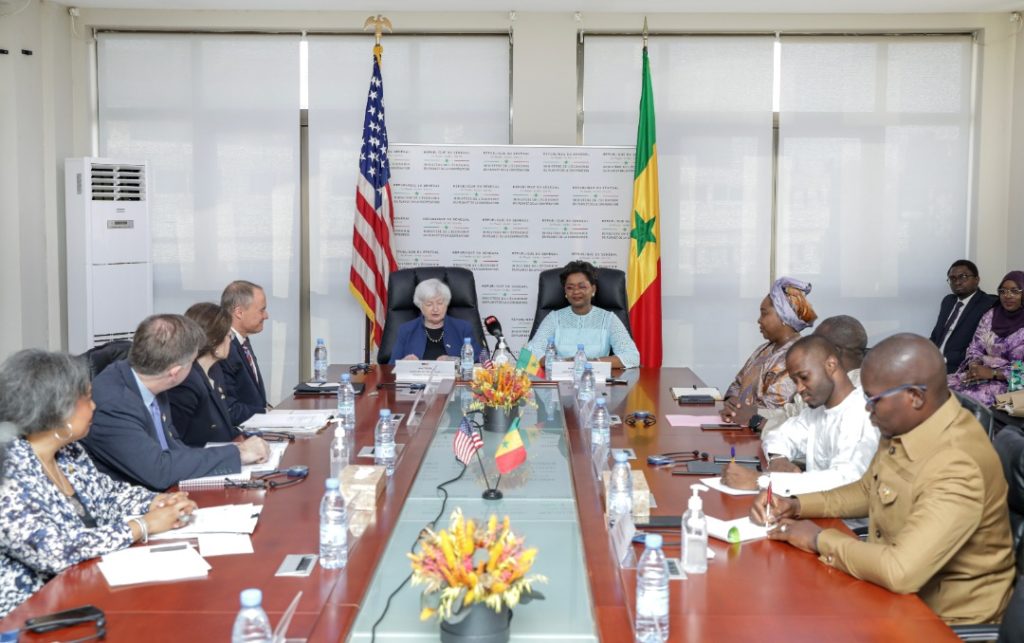 En séjour à Dakar, la Secrétaire d’État américaine au Trésor, Mme Janet L. Yellen, a été reçue par Mme Oulimata Sarr, ministre de l’Économie, du Plan et de la Coopération. Au cours de cette rencontre de travail, qui s’est tenue dans les locaux du ministère de l’Économie, du Plan et de la Coopération, l’autorité étatique sénégalaise et son hôte de marque ont abordé plusieurs questions, notamment le renforcement des relations, les droits de tirage spéciaux (DTS).