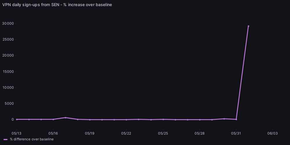 Selon Proton, une entreprise spécialisée dans les services VPN, les inscriptions de nouveaux utilisateurs en provenance du Sénégal ont connu une augmentation spectaculaire de 30 000 % par rapport aux niveaux habituels, et cette tendance est en constante augmentation. Cette situation rappelle les événements survenus lors de troubles politiques et de crises géopolitiques similaires en Iran, en Turquie et en Russie au cours des dernières années.