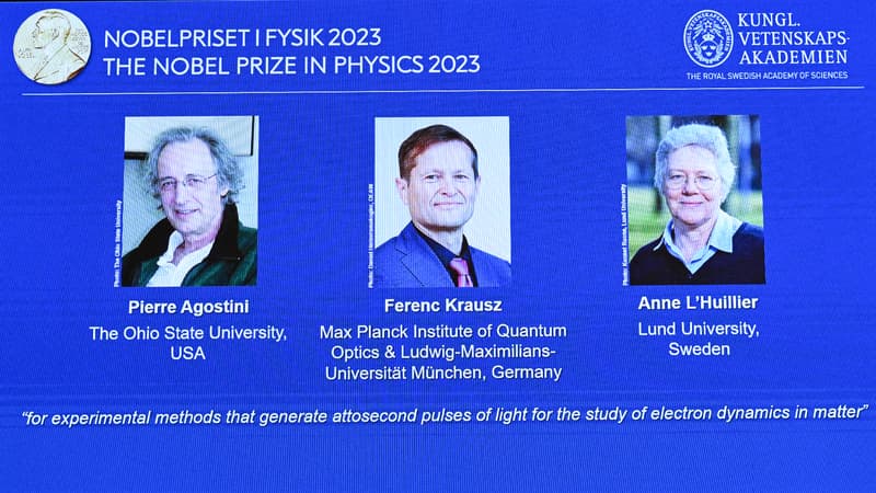 Le Nobel de physique a consacré mardi la Franco-suédoise Anne L’Huillier, le Français Pierre Agostini et l’Austro-hongrois Ferenc Krausz pour leur recherche sur les flashs lumineux ayant permis de comprendre les mouvements ultra-rapides des électrons dans les atomes et molécules.