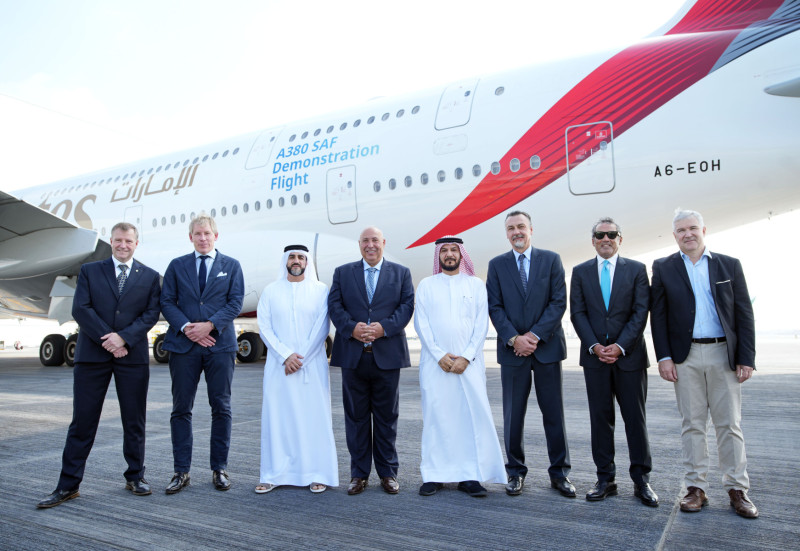 Le vol d’aujourd’hui, piloté par les capitaines Khalid Binsultan et Philippe Lombet, a décollé de l’aéroport international de Dubaï (DXB) avec l’un des quatre moteurs alimenté exclusivement en SAF, contribuant ainsi à démontrer ses qualités comme substitut direct répondant aux exigences techniques et chimiques du kérosène et environnementales. La SAF peut en effet réduire les émissions de carbone jusqu’à 85 %* sur l’ensemble du cycle de vie du carburant par rapport au carburéacteur classique.