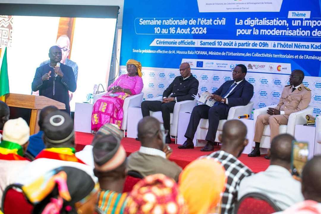 Monsieur Moussa Bala Fofana a d’emblée décliné l’intérêt que revêt cette Semaine nationale qui est un moment d’informer les communautés sur l’importance de l’enregistrement de tous les faits d’état civil, en particulier la déclaration de naissance, premier droit pour tout individu, qui lui ouvre l’accès à ses autres droits.