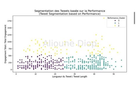 - Segmentation des tweets : aide les groupes à tweeter en fonction de leurs caractéristiques (longueur des mots, taux d’engagement moyen, longueur moyenne des mots) en fournissant des informations pour mieux cibler les efforts de communication.