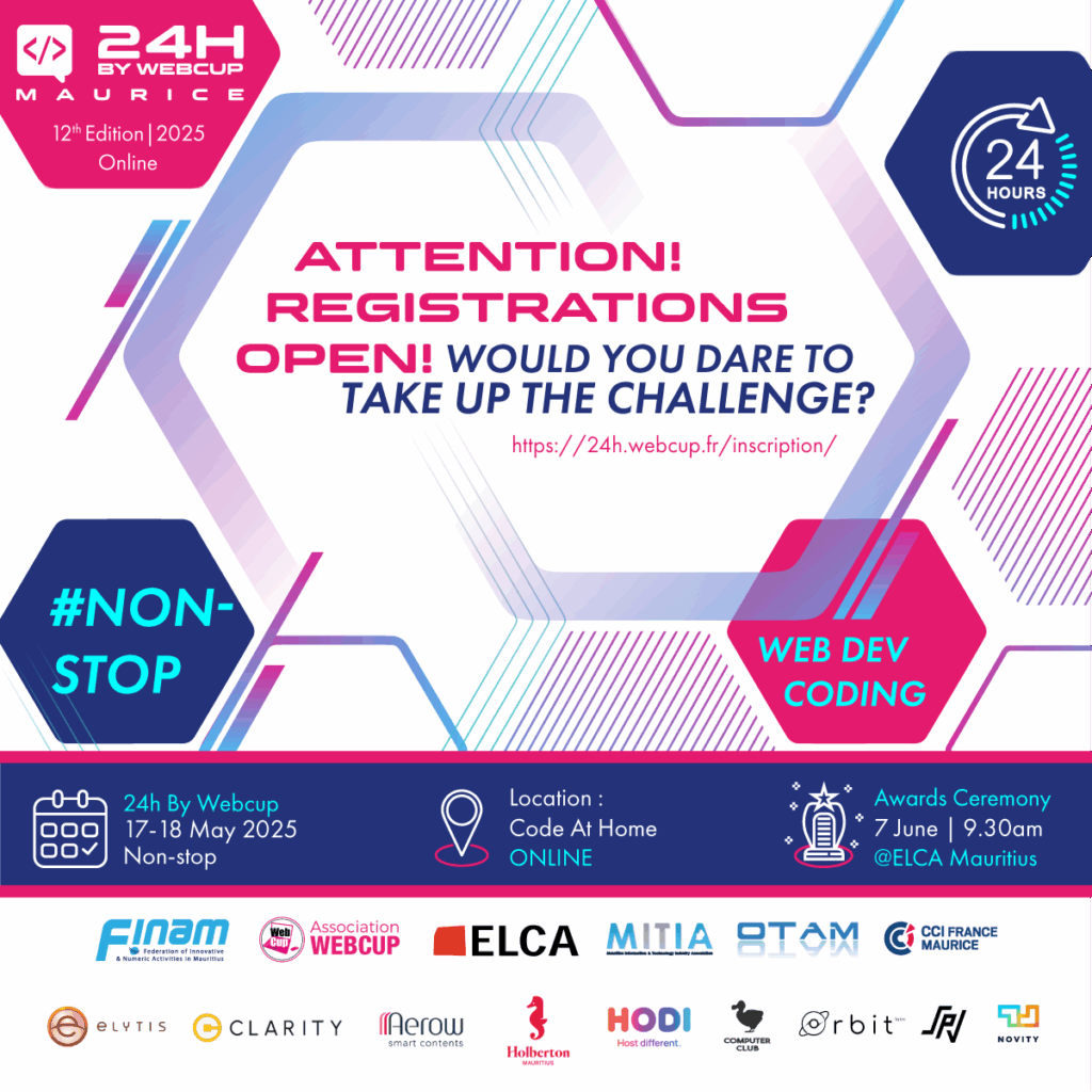 Les passionnés de développement web à Maurice sont appelés à relever un défi unique en son genre les 17 et 18 mai 2025 : la 12ème édition de la 24H BY WEBCUP. Ce hackathon inter-îles mettra les équipes mauriciennes, ainsi que celles des Comores, de Madagascar, de Mayotte, de Rodrigues et de La Réunion, au défi de concevoir un site internet complet en seulement 24 heures, à partir d’un sujet gardé secret jusqu’au lancement.