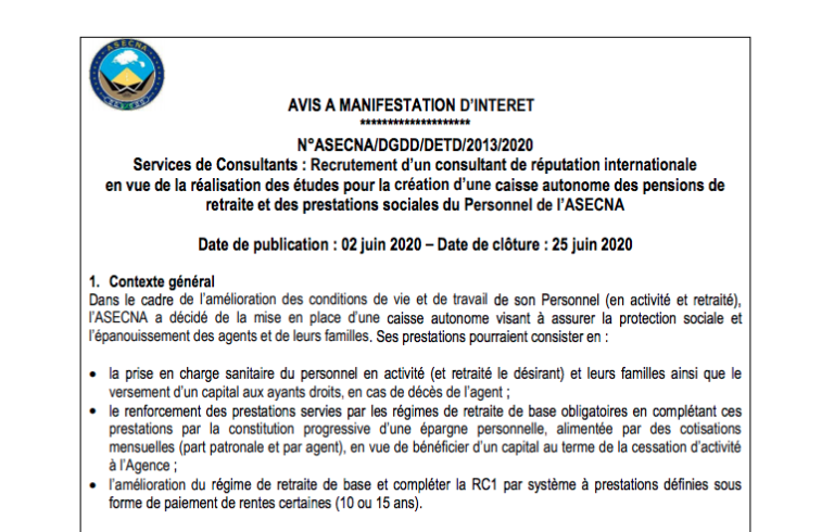 L’ASECNA recrute un Consultant de réputation internationale en vue de la réalisation des études pour...